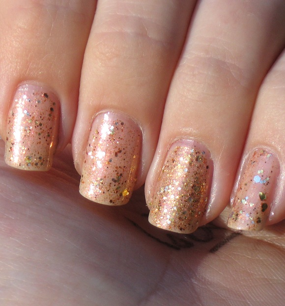 I started with two coats of China Glaze Sun Worshiper, you can still see lines at this point, but when I put the other colours over top I couldn't see any trace of nail lines.